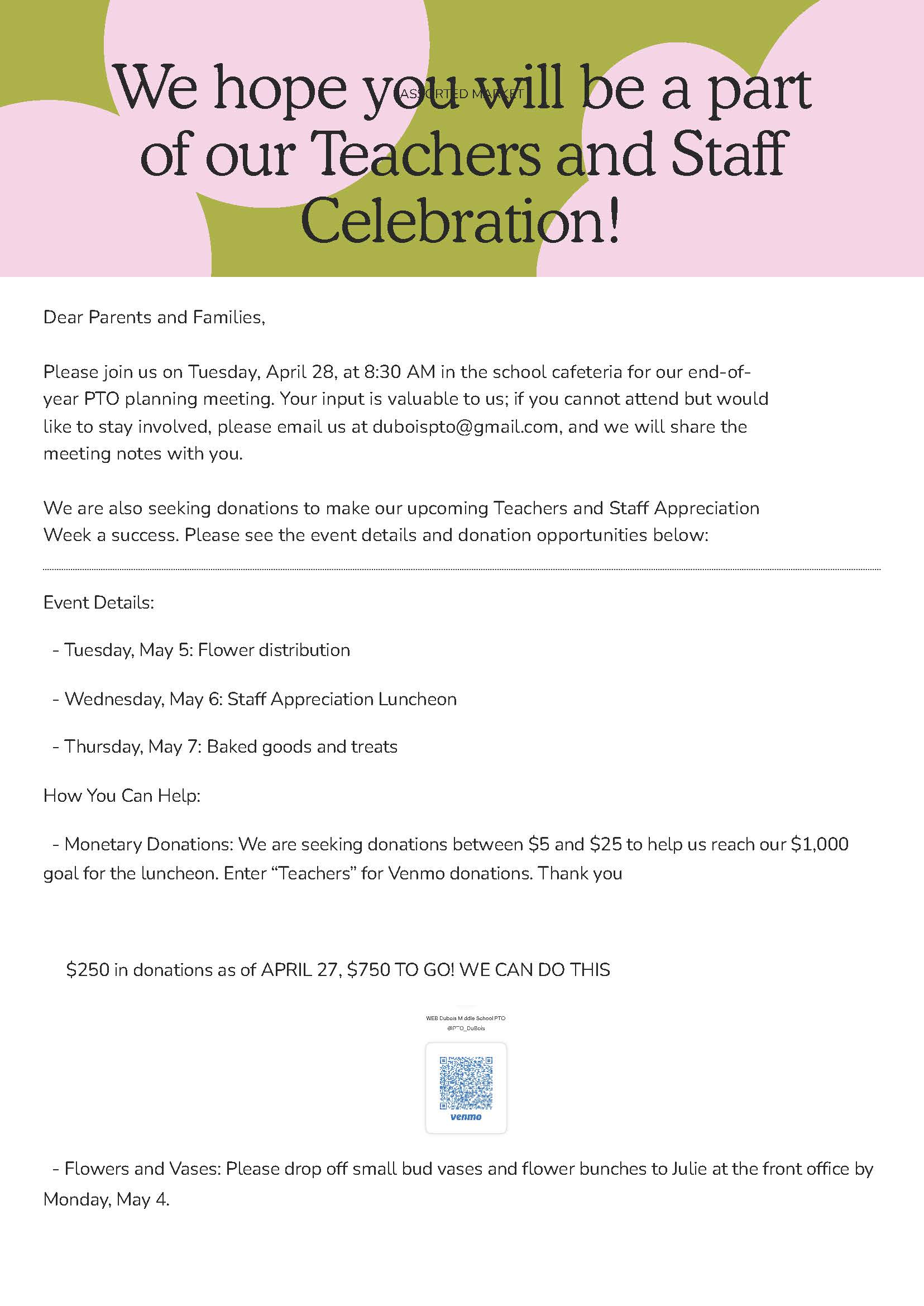 Du Bois News Week at a Glance April 3, 2026 Principal's Message Good Afternoon Du Bois Families, A former colleague of mine from the Pittsfield Public Schools came to see the musical last weekend. ...